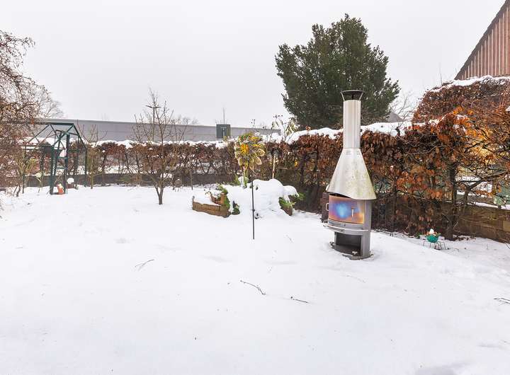 Auf der sonnigen West-Terrasse mit Glasüberdachung genießen Sie erholsame Stunden im Freien und den Ausblick in den liebevoll angelegten Garten.
