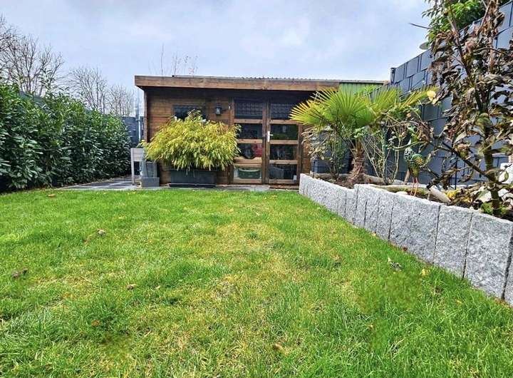 Der Garten wurde im Jahr 2024 aufwendig und modern gestaltet. Neben einem großzügigen Gartenhaus mit viel Stauraum lädt die überdachte Terrasse zum Verweilen ein. Die integrierte elektrische Unterdachmarkise sorgt auch an warmen Tagen für angenehmen Schatten. Eine automatische Bewässerungsanlage übernimmt die Gartenpflege nahezu selbstständig.