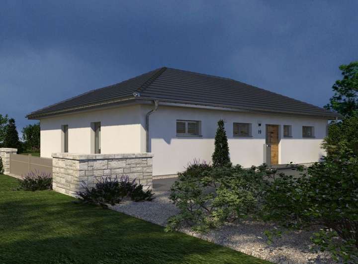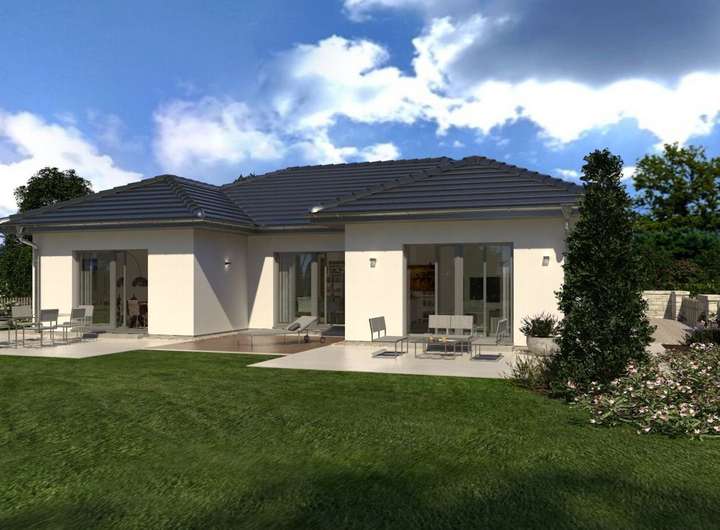 Dieser Bungalow ist in einer Ausführung mit Flach- oder Walmdach erhältlich.