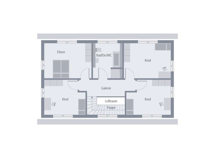 Das Design 5 bietet Ihnen viel Raum, um Ihre Wohnträume zu verwirklichen. Auf etwa 162 m² stehen Ihnen zahlreiche Nutzungsmöglichkeiten zur Verfügung. Der großzügige Wohn-, Ess- und Küchenbereich bildet das Herzstück des Familienlebens. Von hier aus ermöglichen Terrassentüren den direkten Zugang ins Freie und sorgen zudem für lichtdurchflutete Räume. Ein 11 m² großer Hauswirtschaftsraum, eine direkt an die Küche angrenzende Speisekammer sowie ein Gäste-WC vervollständigen das Angebot im Erdgeschoss. Eine einladende Treppe im Flur führt ins Obergeschoss, wo neben einem Elternschlafzimmer und einem Bad noch drei weitere Räume verfügbar sind: Kinderzimmer, Büro oder Gästezimmer - Ihrer Kreativität sind keine Grenzen gesetzt.