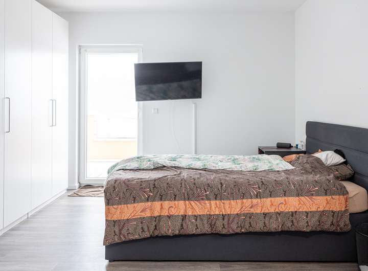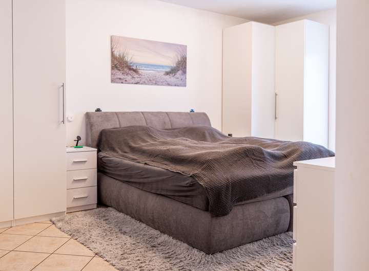 Im Obergeschoss erwarten Sie zwei großzügige Schlafräume, die jeweils über einen eigenen Balkon verfügen und damit einen besonderen Rückzugsort bieten. Das stilvolle Badezimmer auf dieser Ebene ist mit einer ebenerdigen Dusche ausgestattet und unterstreicht den hohen Wohnkomfort.