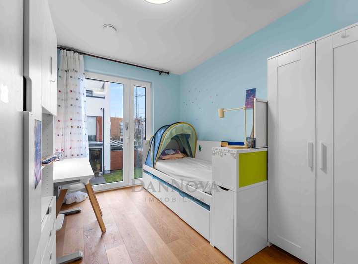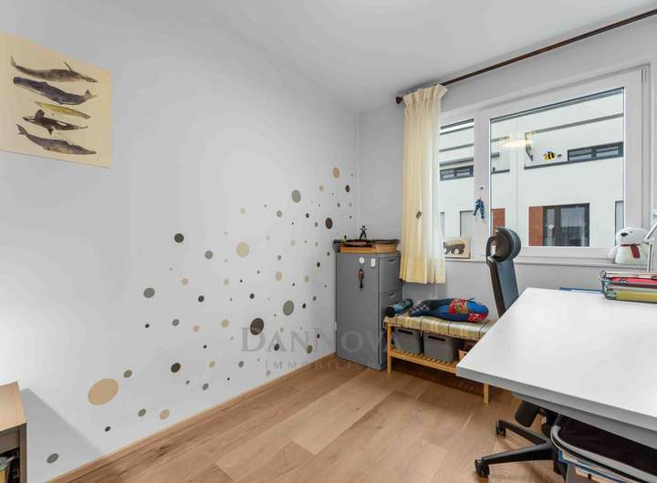 Für eine Familie mit vier Personen bietet das Haus ideale Voraussetzungen – und selbst für ein drittes Kind ist ausreichend Platz vorhanden, denn insgesamt stehen vier Schlafzimmer zur Verfügung. Die durchdachte Raumaufteilung schafft Rückzugsorte ebenso wie gemeinschaftliche Bereiche zum Zusammensein.