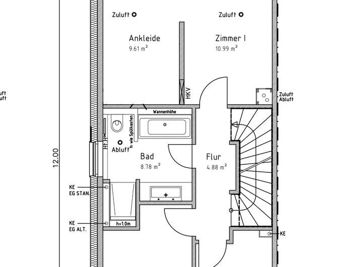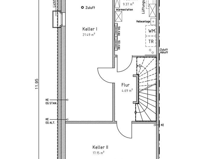 - Zentrale Lüftungsanlage mit Wärmerückgewinnung und Lüftungsventile in jedem Zimmer inkl. Keller