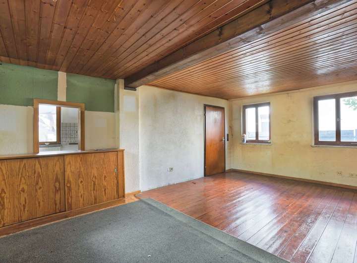 Insgesamt stehen ca. 120 m² Wohnfläche zur Verfügung, verteilt auf zwei nahezu gleich große Wohneinheiten mit jeweils rund 60 m². Aktuell sind beide Häuser im Erdgeschoss durch einen Durchbruch verbunden und werden als eine Einheit genutzt. Dieser lässt sich bei Bedarf problemlos wieder schließen – so entstehen zwei vollständig getrennte Häuser auf einem Grundstück.