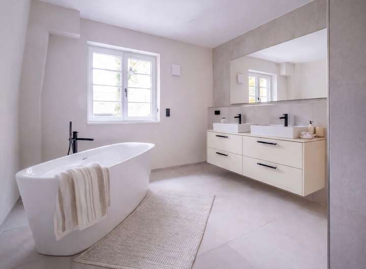 - Hochwertige Bäder mit Fliesen, Sanitärkeramik von Laufen und Armaturen von Herzbach