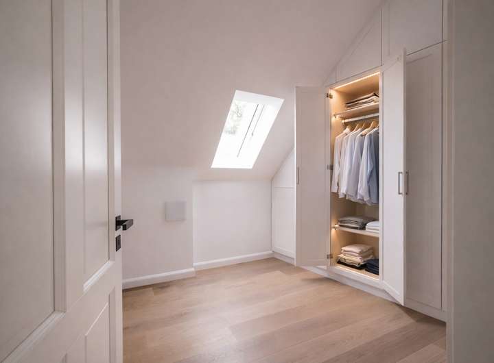- Großzügiges Masterbad mit Raumhöhe bis unter den Dachfirst