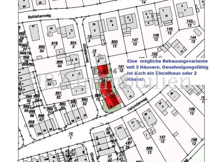 Wie schon in den Plänen aufgezeichnet ist hier neben einem großzügigen Einfamilienhaus auch die Bebauung mit einem Zweifamilienhaus oder einem Doppelhaus möglich.