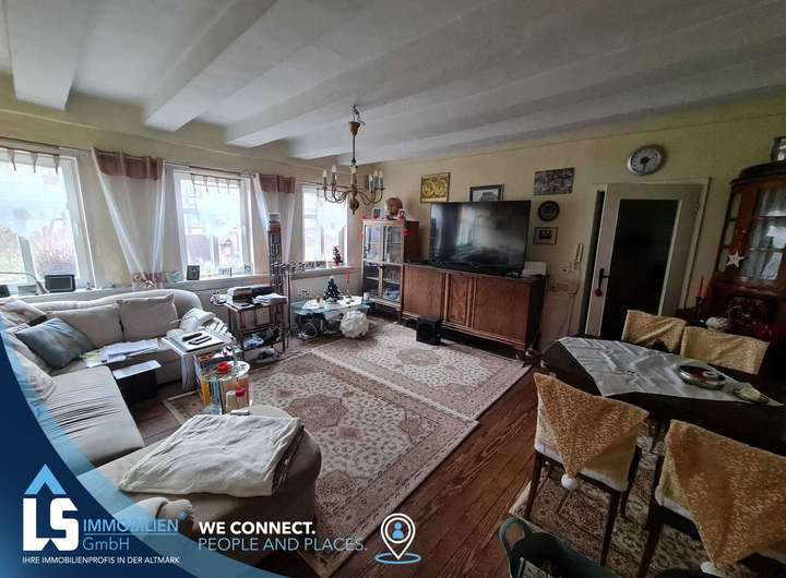 Das Haus ist in drei Wohneinheiten unterteilt. Zwei Wohneinheiten befinden sich im Erdgeschoss und eine großzügige Wohneinheit mit etwa 130 Quadratmetern Fläche befindet sich im 1. Obergeschoss. Die Jahreskaltmiete für alle 3 Wohneinheiten liegt derzeit bei ca. 15.000 € .