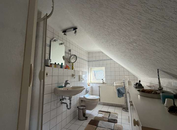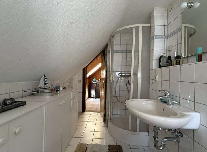 Im Dachgeschoss gibt es ein kleines Duschbad, zwei Schlafzimmer, kleine Abstellräume als Seitenkammern, sowie weitere Nutzflächen im ebenfalls isolierten Spitzboden.