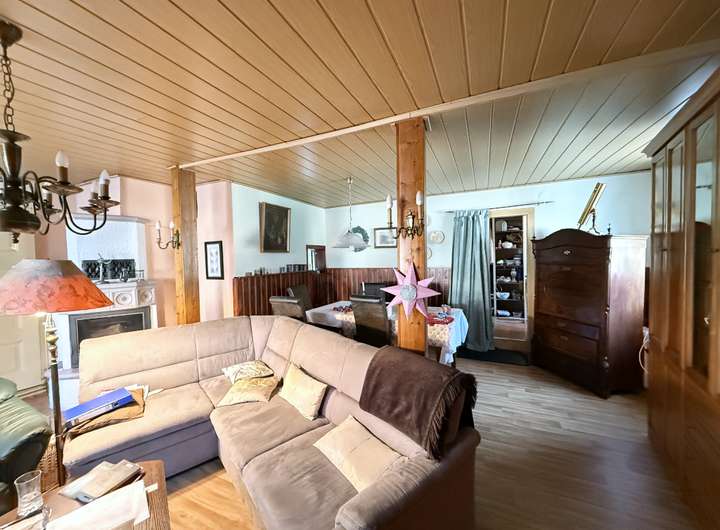 Für Familien besonders relevant ist die durchdachte Raumaufteilung, die viel Flexibilität ermöglicht: Drei Schlafräume bieten Platz für Eltern, Kinderzimmer oder Home-Office, das große Wohnzimmer mit Kamin schafft gemütliche Gemeinschaftsbereiche. Küche, Speisekammer und Arbeitszimmer im Erdgeschoss sorgen für Alltagstauglichkeit, während das Dachgeschoss zusätzliche Nutzflächen bietet. Das eingefriedete Grundstück bietet dem Hofbereich Sicherheit und Freiraum für Spiel und Entfaltung der Kinder. Die vorhandenen Renovierungs- und Modernisierungspotenziale erlauben eine individuelle Gestaltung nach Geschmack, von energetischer Aufwertung über eine zeitgemäße Badgestaltung bis hin zur Erweiterung oder Nutzung der Nebengebäude. Insgesamt bietet dieses Haus eine familienfreundliche Kombination aus charmanter Fachwerk-Atmosphäre, solide Basis-Technik und viel Potenzial für eine bleibende, harmonische Familienresidenz.