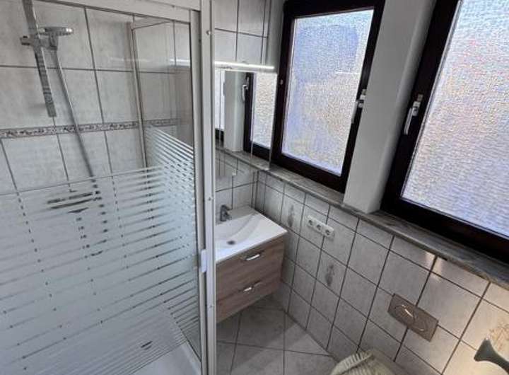 Das im EG gelegene Bad mit Fenster verfügt über Waschbecken, Wanne und WC. Die zwei Bäder im DG verfügen ebenfalls jeweils über ein Fenster und sind mit Waschbecken, Dusche und WC versehen. Alle drei Bäder wurden um das Jahr 2002 modernisiert.