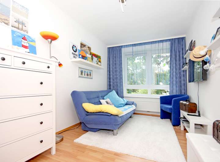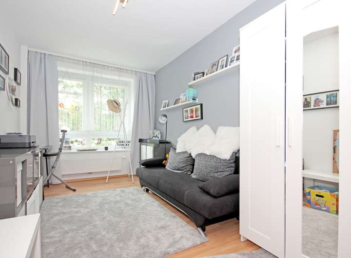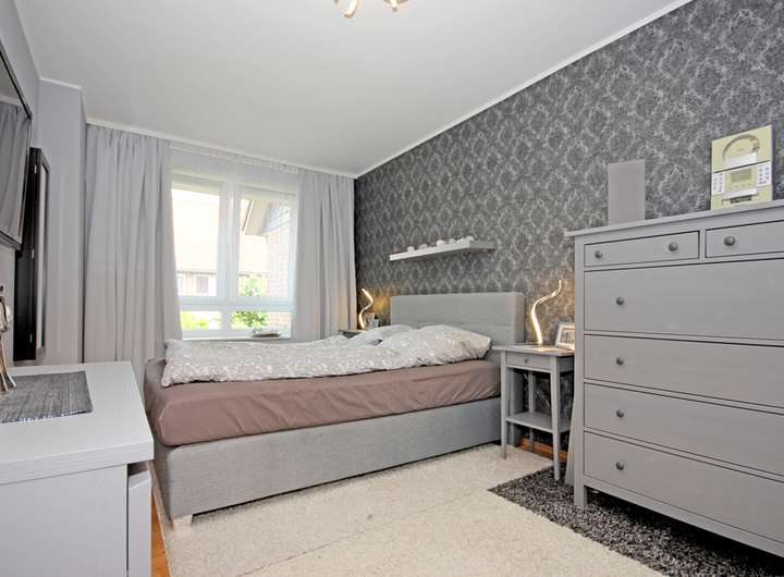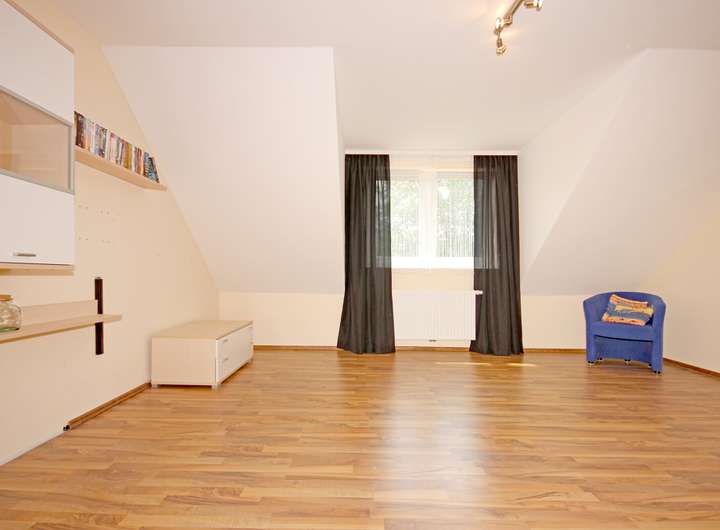 Im Obergeschoss stehen mehrere Zimmer zur Verfügung, die sich als Kinderzimmer, Arbeitszimmer oder Gästezimmer nutzen lassen, ohne dass der Grundriss an Ruhe verliert. Die Räume wirken freundlich und gut möblierbar, mit großen Fenstern und einem stimmigen Zusammenspiel aus hellen Wandflächen und warmen Bodenbelägen.