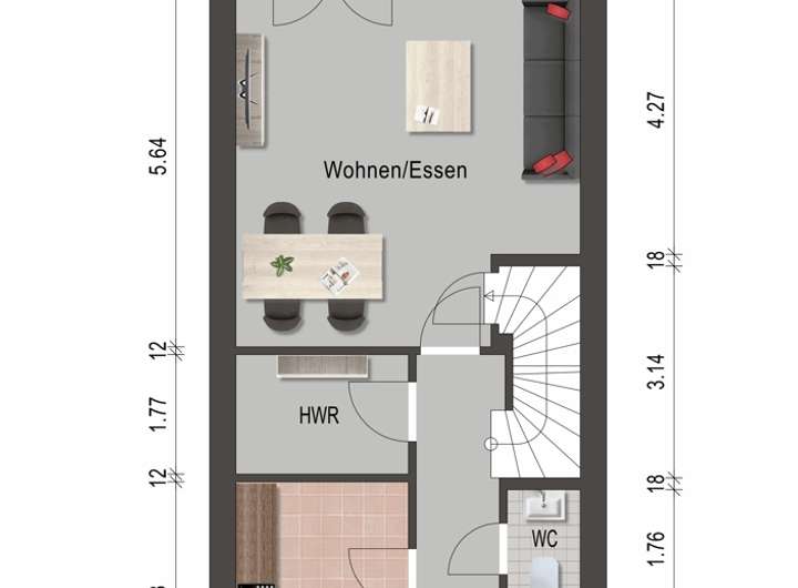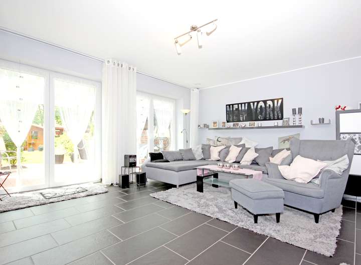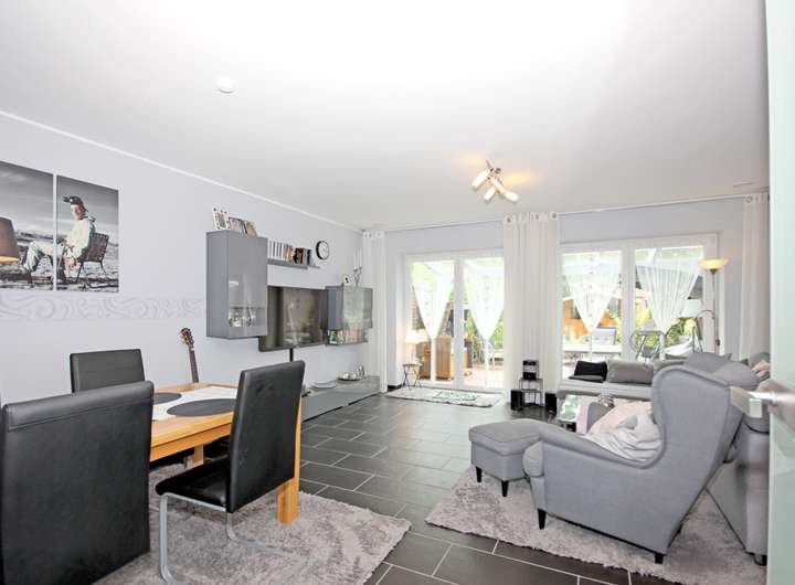 - Großzügiger Wohn und Essbereich mit breiter Fensterfront und Terrassenzugang