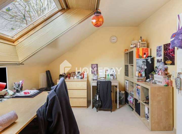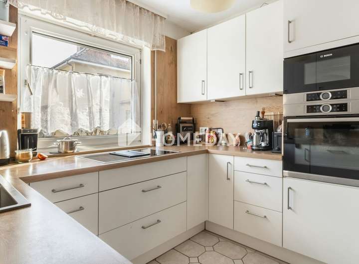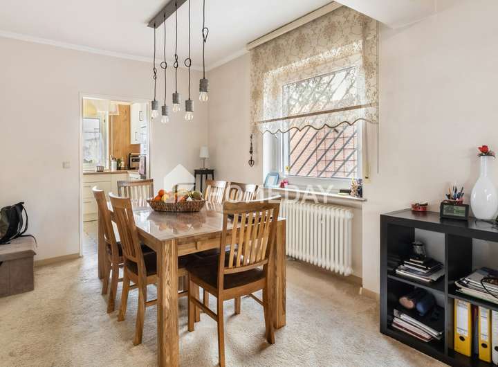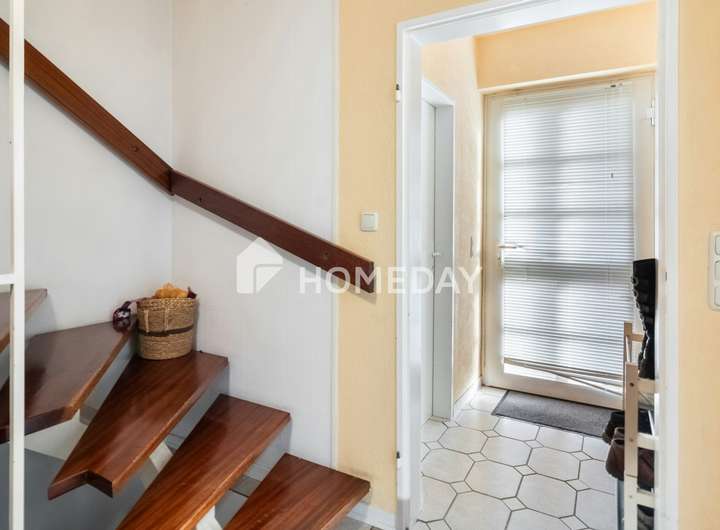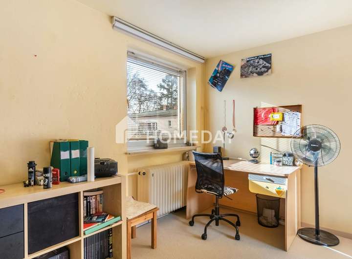 Die Wohnfläche von ca. 132 Quadratmetern verteilt sich auf insgesamt sieben Zimmer und bietet vielfältige Nutzungsmöglichkeiten für Familien, Homeoffice oder Gäste. Ergänzt wird das Raumangebot durch weitere Räume im Vollkeller. Im Inneren präsentiert sich das Haus mit einer normalen, zeitlosen Ausstattung. Besonders hervorzuheben sind das großzügige Wohnzimmer mit Zugang zum Balkon sowie das Tageslichtbad, das mit einer Dusche ausgestattet ist. Außerdem befinden sich je ein WC im Erd- sowie im Dachgeschoss. Die Wohnräume sind mit einer Kombination aus Fliesen, Laminat und Auslegware versehen.