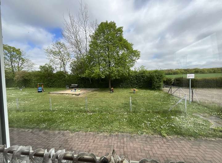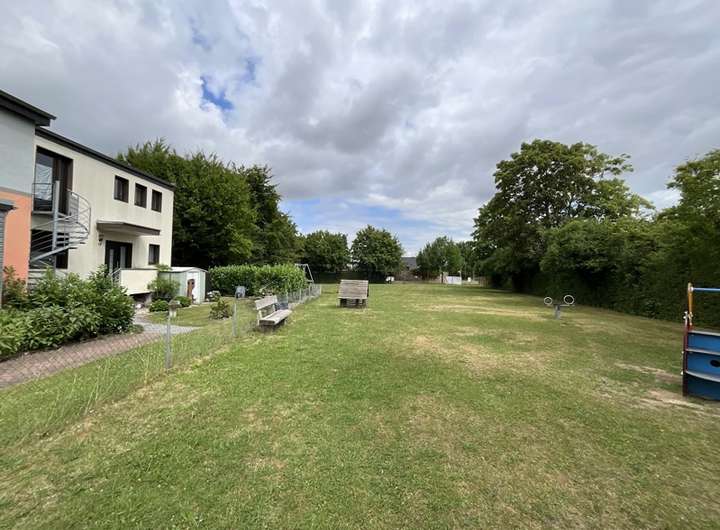 Der gepflegte Spielplatz für die Kinder schließt direkt am Grundstück an.