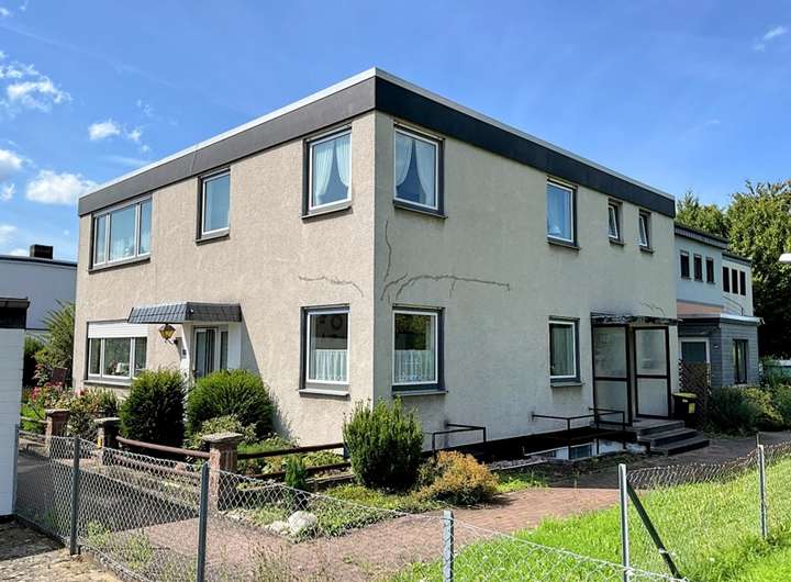 Zum Verkauf steht ein massiv gebautes Zweifamilienhaus aus dem Jahr 1975. Das als Reihenendhaus ausgeführte Gebäude verfügt über einen Vollkeller, ein Flachdach, einer Gaszentralheizung von 1996, zweifach verglaste Kunststoff-ISO-Fenster mit Rollläden sorgen für eine solide Wärmedämmung. Insgesamt bietet dieses Haus guten Entwicklungsmöglichkeiten in einer ruhigen und angenehmen Wohnlage..