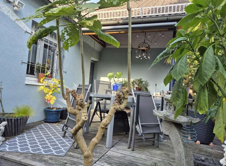 -Grosse Holzterrasse nach Süden ausgerichtet, noch mit einem