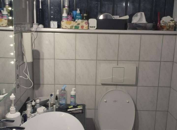 -kleines Tageslichtbad mit WC/Waschbecken und freistehender
