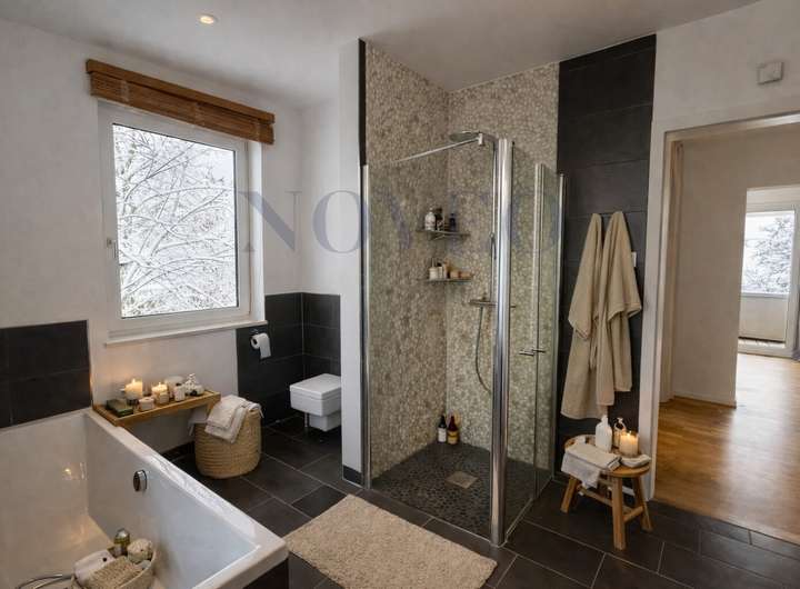 - 3 Tageslichtbäder mit hochwertigen Armaturen von Duravit sowie