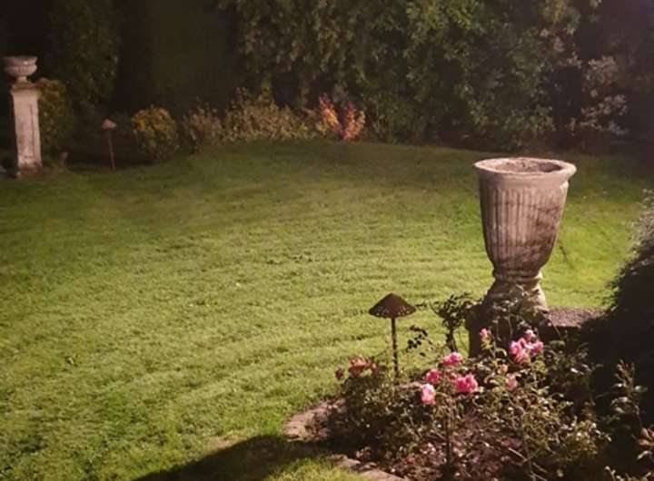 Genießen Sie den Blick auf die sorgfältig gestaltete Gartenlandschaft.