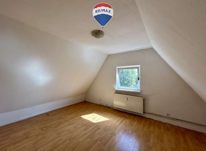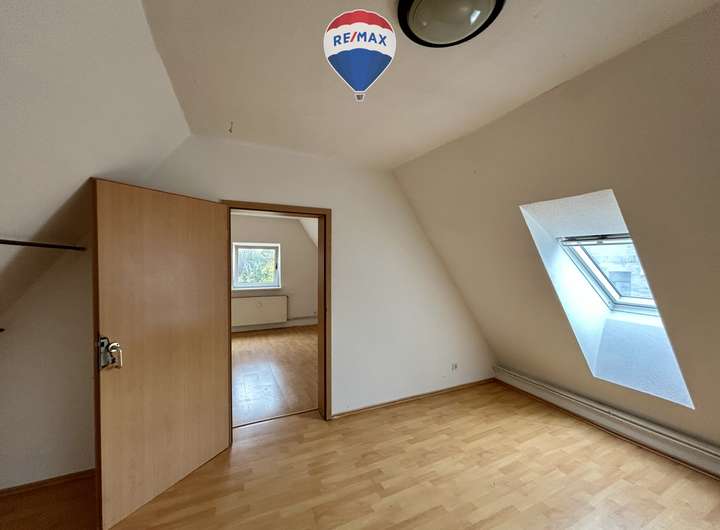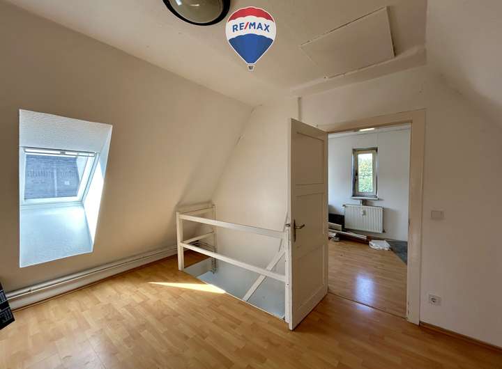 2 Zimmer, Küche, Duschbad. Eine Treppe führt in das ausgebaute Dachgeschoss, das zusätzliche ca. 15 m² Wohn- /Nutzfläche bietet. Auch hier fehlt derzeit eine Einbauküche.