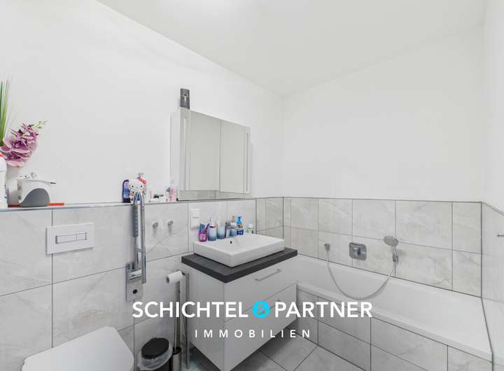 Die zwei Badezimmer – eines mit Badewanne und Dusche im 1. Obergeschoss, das andere mit geräumiger Dusche im 2. Obergeschoss – sowie das separate Gäste-WC im Erdgeschoss bieten durchdachten Komfort auf allen Ebenen.