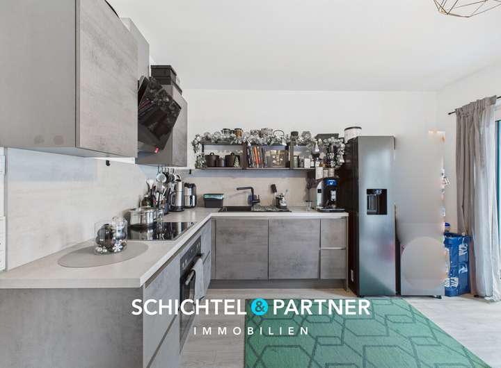 Die zwei modernen Einbauküchen, ausgestattet mit AEG-Marken-Elektrogeräten, ermöglichen eine flexible Nutzung des Hauses – beispielsweise als zwei Wohneinheiten für Angehörige, erwachsene Kinder oder Pflegekräfte.