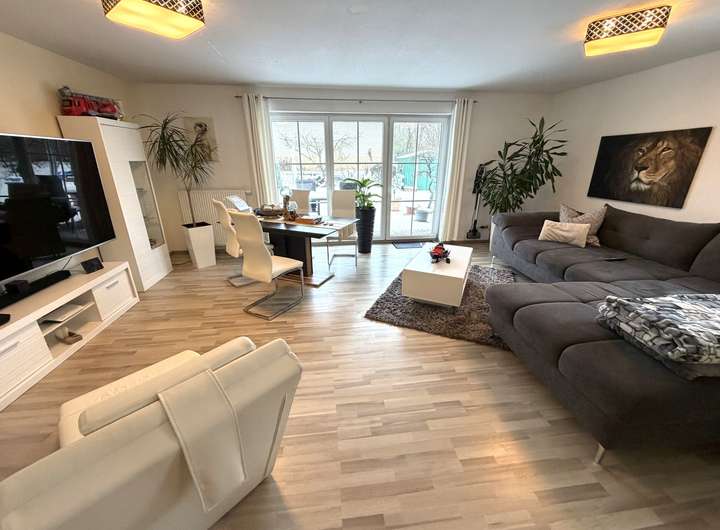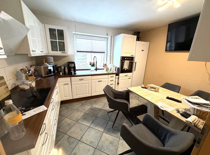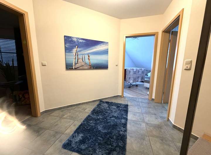 Die DHH hat als Bodenbelag Fliesen und Vinyl-Design Laminat. Die Wände sind zeitlos weiß gestrichen. Die Fenster sind mit Rolläden ausgestattet. Die moderne Küche verfügt über einen großzügigen Sitzplatzbereich. Alle Wohnräume haben