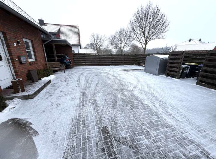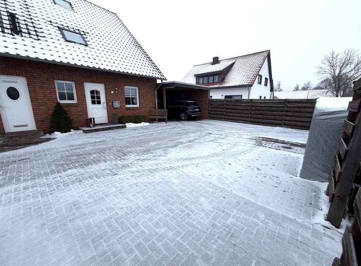 Das vorhandene Carport ist sehr leicht zu einer Garage umzubauen. Der sehr große, zu dem Haus gehörende gepflasterte Bereich vor dem Haus bietet ausreichend Platz für zusätzliche Autos.