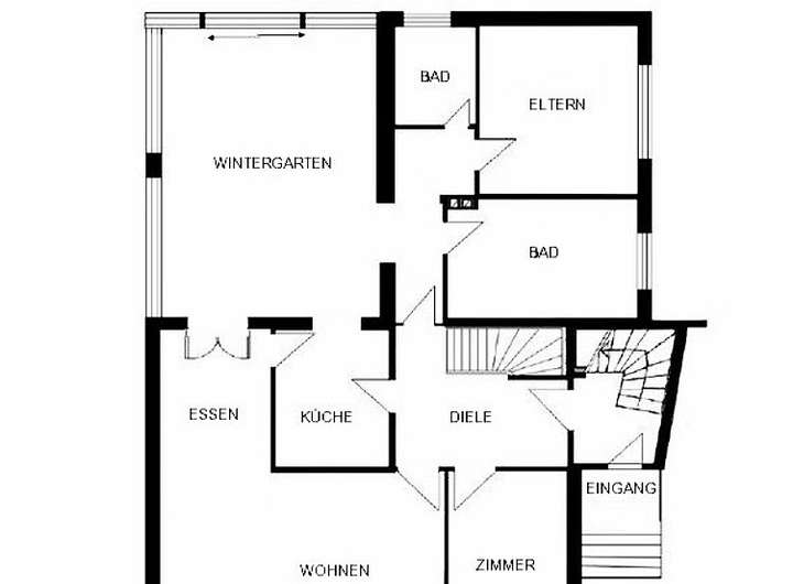 Die Hauptebene überzeugt mit einer großzügigen und hellen Wohneinheit. Einladender Mittelpunkt ist der Wohn- und Essbereich mit angrenzender Küche, von dem aus Sie in den neu errichteten Wintergarten gelangen. Zwei Tageslichtbäder, ein Elternschlafzimmer sowie ein weiteres Zimmer (z. B. als Büro oder Gästezimmer nutzbar) runden das Raumangebot ab. Von hier genießen Sie den Blick in den liebevoll angelegten Garten mit Teich, Grillplatz und Pavillon – ein idyllischer Ort zum Entspannen, auch im Winter.