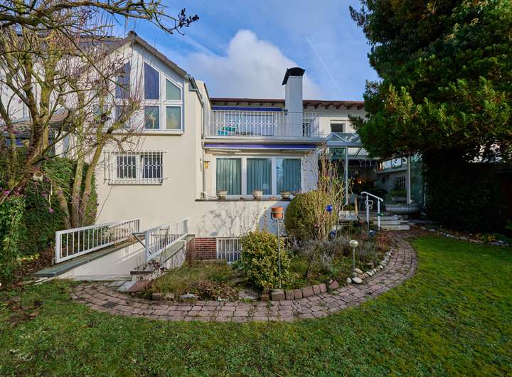 Das lichtdurchflutete Wohnhaus überzeugt durch eine durchdachte Raumaufteilung, hochwertige Ausstattung mit Kaminzimmer und einen großzügigen Wintergarten als Wohlfühl-Zentrum mit Blick in den idyllischen Garten.
