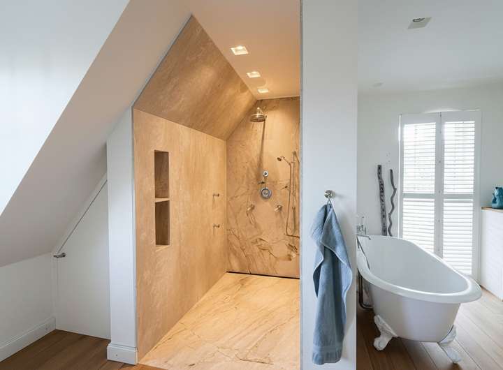 Ein Highlight ist der Elternbereich im Dachgeschoss, welcher im Jahr 2019 ausgebaut wurde. Das offene Raumkonzept bietet einen Schlafbereich mit direktem Blick in die Natur. Eine freistehende Badewanne, ein Ankleidebereich, eine Sauna, eine Dusche und ein separates WC, erfüllen alle Ansprüche an komfortables Wohnen.