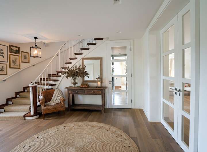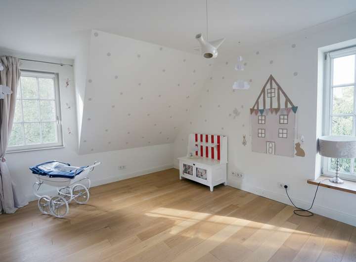 Durch das einladende Entree gelangt man in den großzügigen Wohn- und Essbereich, der unter anderem eine offene Küche umfasst. Die Wohnfläche erstreckt sich über drei Etagen mit insgesamt rund 312 Quadratmetern und bietet mit insgesamt sechs Zimmern sowie einem offenen Musikzimmer ausreichend Platz für die ganze Familie.