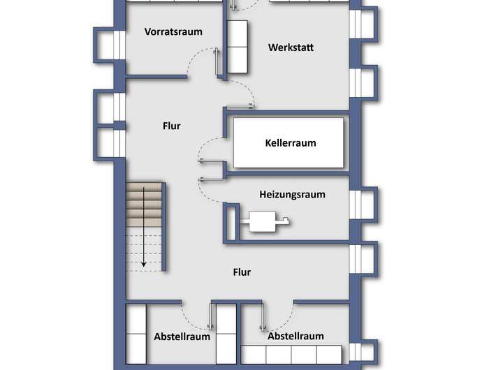 Das Kellergeschoss ist wie folgt aufgeteilt:
