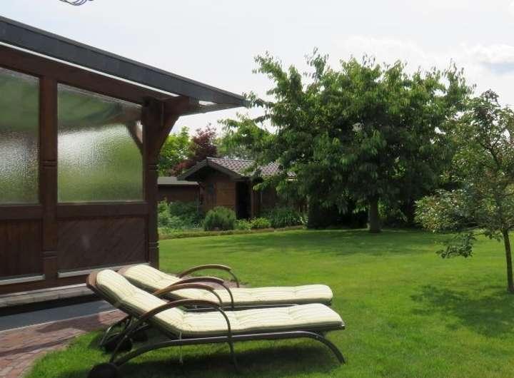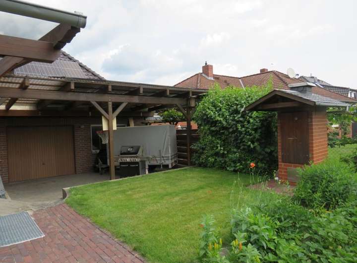 Der rückliegende, abgeschlossenen u. komplett eingezäunte Garten in Südausrichtung ist liebevoll angelegt. Hier laden zwei Sonnenterrassen zum Erholen ein u. bietet viel Platz für Freizeitaktivitäten. Hier sind ein gemauerter Räucherofen, ein Gartenhaus mit Voliere u. ein Gemüsegarten vorhanden.