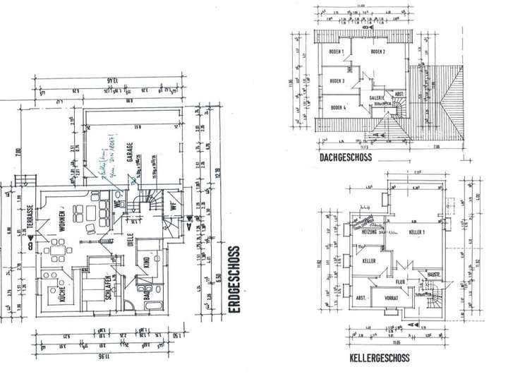 Garage/Stellplätze: 4 Außenstellplätze, Doppelgarage 59 m² mit darüberliegendem Abstellraum (Zugang über das OG)