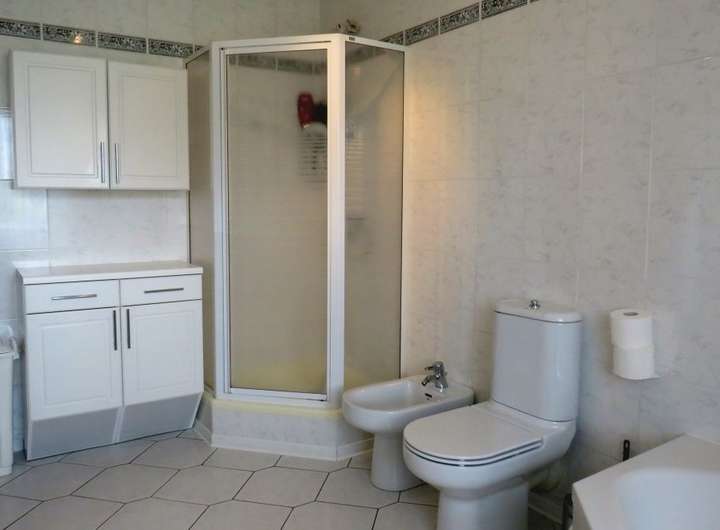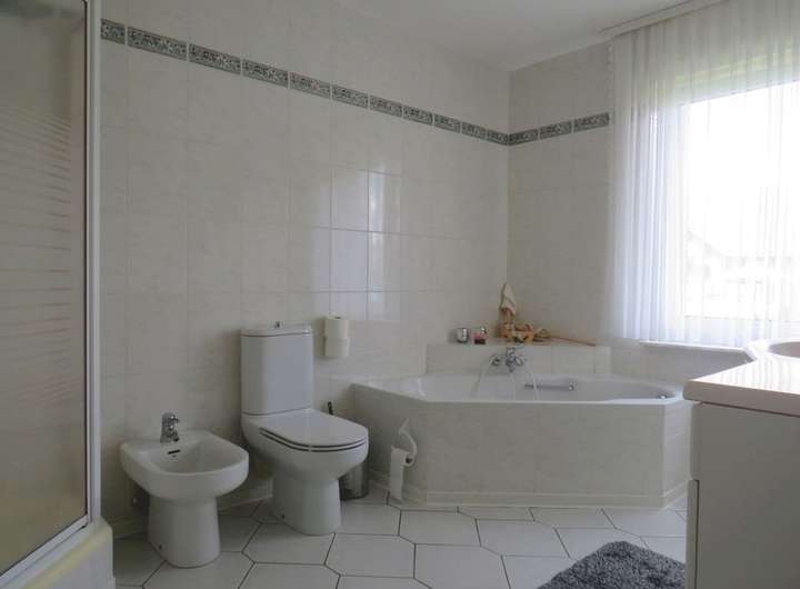 Bad im EG: Waschtisch, Badewanne, Dusche, WC, Fenster