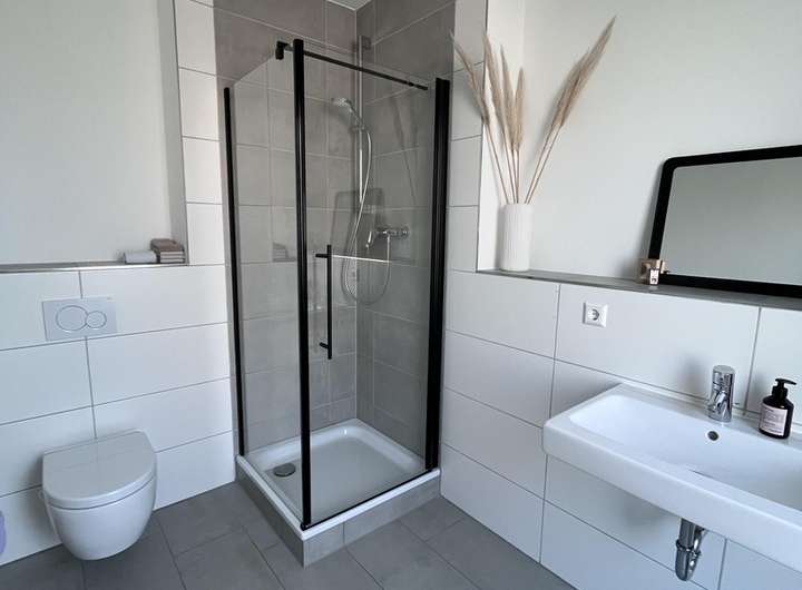 Die im Jahr 2020/2021 erbaute Immobilie umfasst eine Gesamtwohnfläche von ca. 155 m2, die sich über drei Etagen erstreckt. Zusätzlich verfügt das Objekt über einen großzügigen, ca. 60 m2 großen Keller mit Fenstern, welcher neben ausreichend Stauraum durch eine tolle, geräumige Sauna besonders hervorsticht. Das Erdgeschoss betreten Sie durch einen hellen Eingangsbereich mit Garderobe und Gäste-WC. Angrenzend befindet sich der einladend gestaltete und lichtdurchflutete Wohn-Essbereich mit bodentiefen Fenstern und direktem Zugang zur Terrasse. Highlight der modernen, offenen Küche ist der große Kühlschrank (Kühl-/ Gefrierkombination) mit Frischwasser-Zapfstelle und Eiswürfelzubereitungsmöglichkeit.