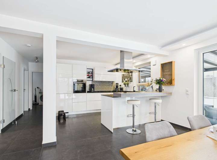 - großer offener Wohn-/Essbereich mit hochwertiger Einbauküche