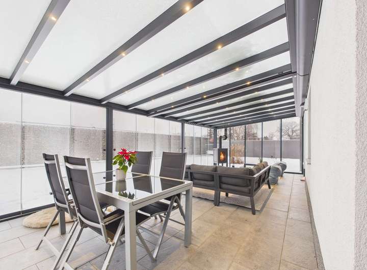 - Riesiger Wintergarten mit Kamin u. elektrischem Sonnenschutz über die komplette Fläche