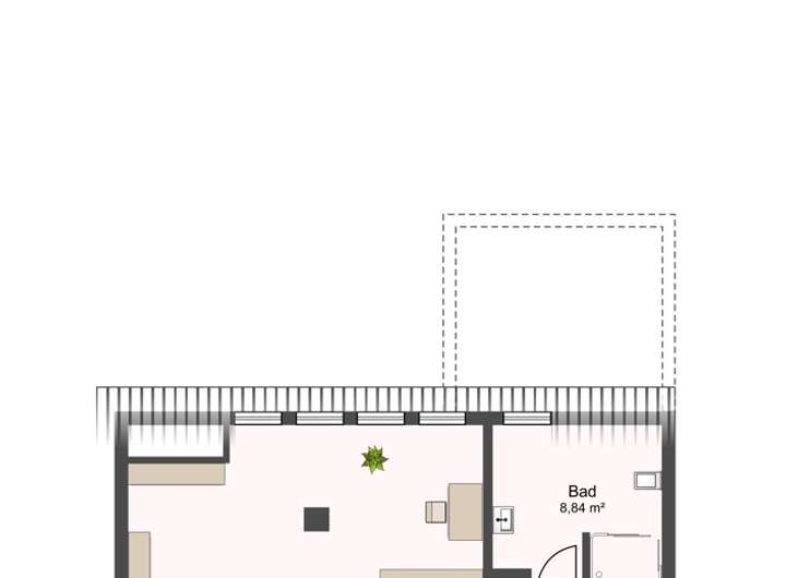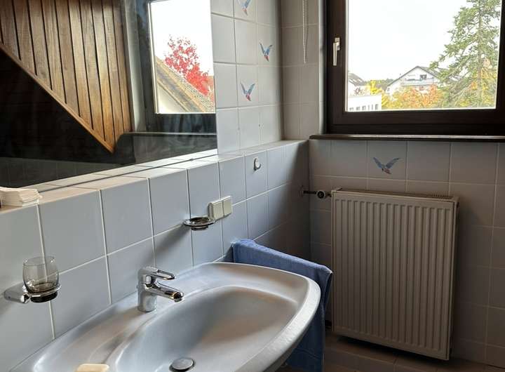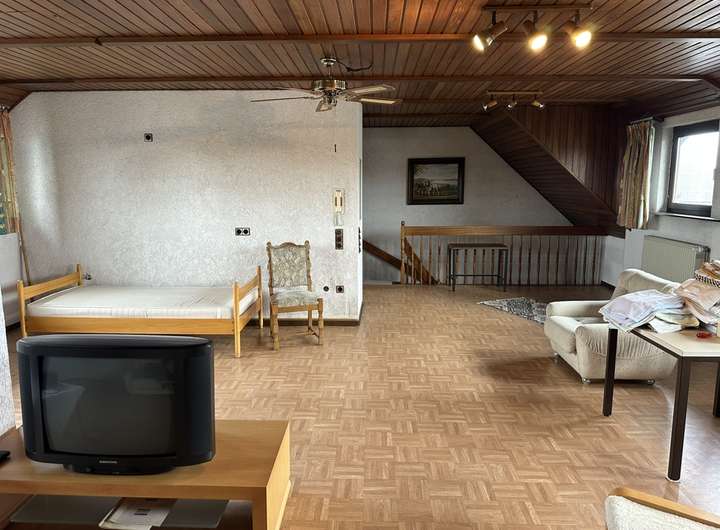 Im Dachgeschoss befindet sich ein großes Studiozimmer mit minimalen Dachschrägen, das über Küchenanschlüsse sowie ein eigenes Tageslichtbad mit Dusche verfügt – ideal als Jugendbereich, Büro oder Rückzugsort für ein Familienmitglied.