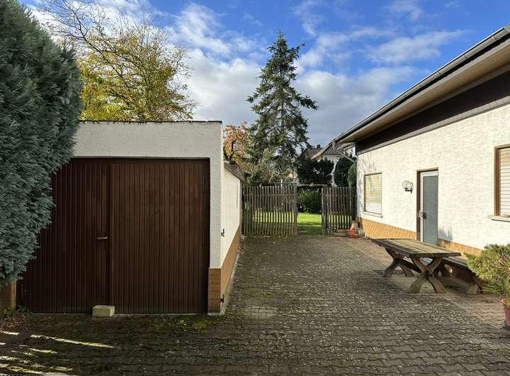 Der große Innenhof bietet nicht nur ausreichend Platz zum Parken (Garage, überdachter Stellplatz), sondern auch geschützten Raum zum Spielen oder Verweilen. Der daran anschließende Garten im rückwärtigen Bereich ist nach Südwesten ausgerichtet – ideal für sonnige Nachmittage und lange Sommerabende.