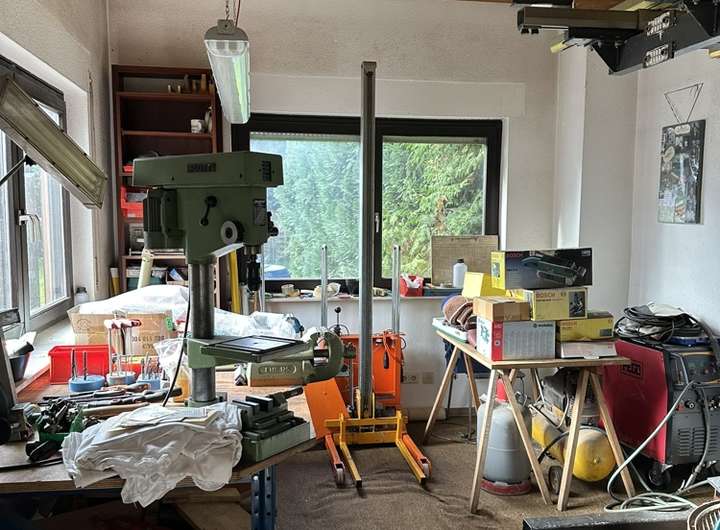 Das angrenzende Nebengebäude, welches im Jahr 1976 angebaut wurde, umfasst ca. 29 m² Nutzfläche und wird derzeit als Werkstatt und Lager genutzt. Es verfügt über eine eigene Toilette – nach Rücksprache mit dem Bauamt könnte hier ggf. eine kleine Einliegerwohnung realisiert werden.