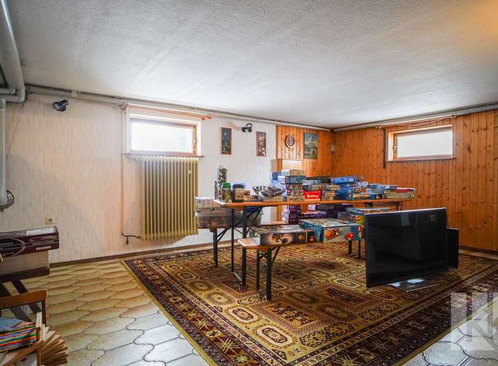 Abgerundet wird das Angebot durch eine Garage sowie zusätzliche Stellplätze vor dem Haus. Zusätzlich verfügt das Haus über einen vollständig ausgebauten Keller, der über einen abgetrennten Flur erreichbar ist. Dieser bietet ein Gäste-WC, einen großzügigen Partyraum, mehrere Abstellflächen sowie eine Werkstatt und damit vielfältige Nutzungsmöglichkeiten und praktischen Stauraum.