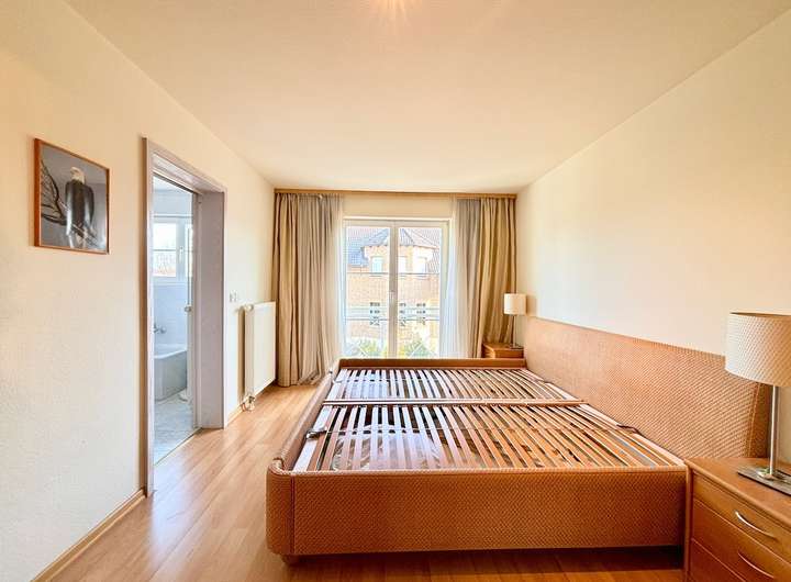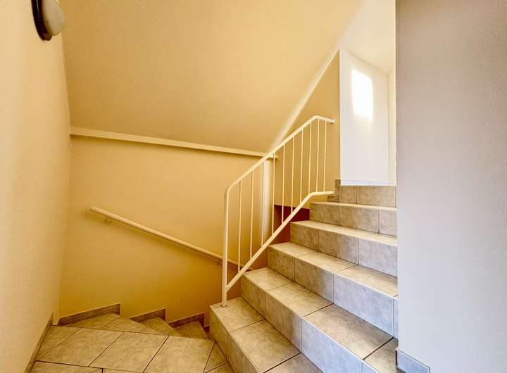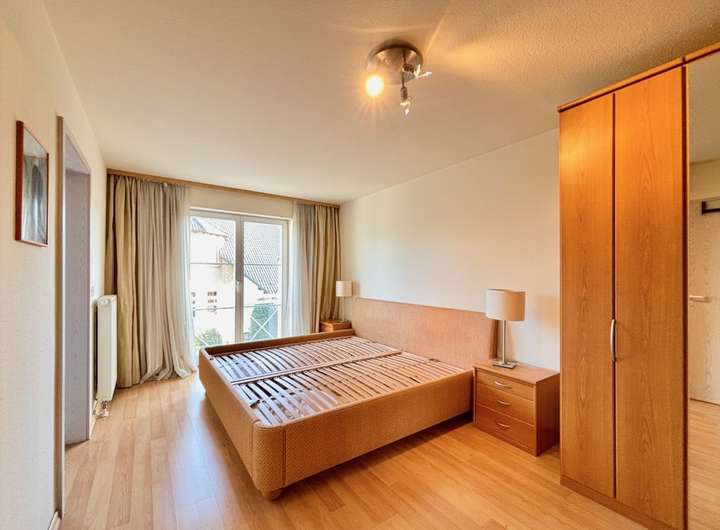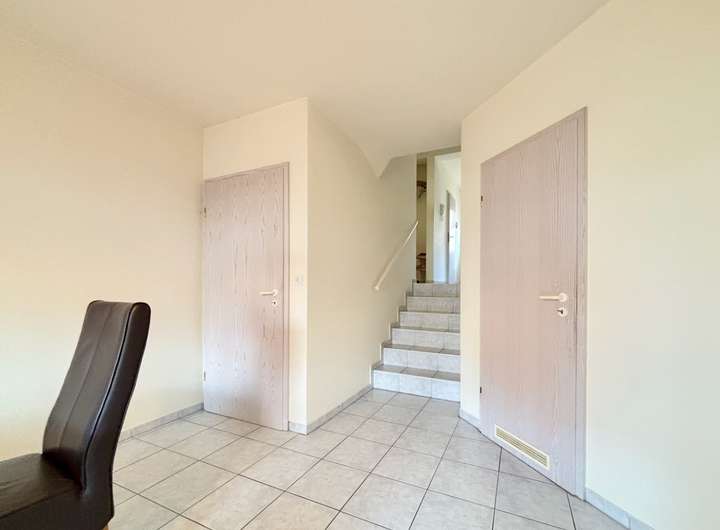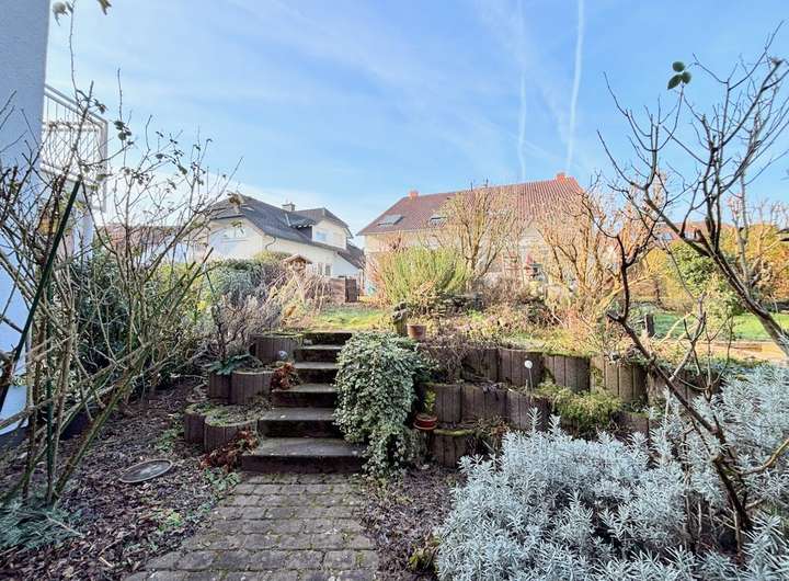 Der Eingangsbereich empfängt Sie mit einem Gäste-WC und direktem Zugang zur innenliegenden Garage, was besonderen Komfort im Alltag bietet. Von hier führt eine halbe Treppe hinab in den Küchen- und Essbereich. Die geschlossene Küche verfügt zusätzlich über eine praktische Speisekammer und der Essbereich bietet direkten Zugang zur überdachten Terrasse und in den Garten. Eine halbe Ebene darüber öffnet sich der großzügige Wohnbereich mit viel Tageslicht. Die große Fensterfront schafft eine angenehme Wohnatmosphäre und führt auf den gemütlichen Balkon. Auf der nächsten Ebene befindet sich das geräumige Schlafzimmer. Dieses ist direkt mit dem komfortablen Badezimmer ausgestattet, das über Badewanne und Dusche verfügt. Zwei weitere Zimmer auf der folgenden halben Ebene eignen sich ideal als Kinderzimmer oder Büro. Den Abschluss bildet das unter dem Dach ausgebaute Schlafzimmer mit großer Fensterfront. Das offene Treppenhaus verbindet alle Ebenen harmonisch miteinander. Gleichzeitig bleibt durch die Split-Level-Struktur die Privatsphäre der einzelnen Wohnbereiche gewahrt. Eine halbe Etage des Hauses ist unterkellert und bietet zusätzliche Abstellflächen sowie einen großen Hauswirtschaftsraum und eine Waschküche. Die Beheizung erfolgt über eine moderne Gas-Zentralheizung aus dem Jahr ca. 2023.