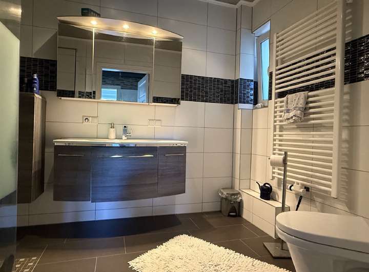 Das Haus wurde 2014 zum größten Teil modernisiert: Die Fassade erhielt eine hochwertige Dämmung und einen frischen Anstrich, das Dach wurde neu eingedeckt und isoliert, und sämtliche Fenster durch moderne, dreifach verglaste Kunststofffenster ersetzt. Auch das Badezimmer im Erdgeschoss präsentiert sich bereits zeitgemäß.