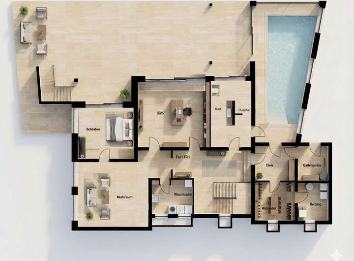 + Anbau (Indoorpool + erweiterter Wohnbereich + Balkonerweiterung)