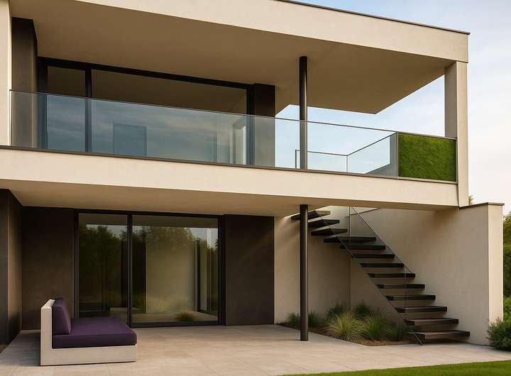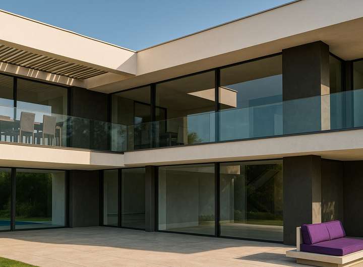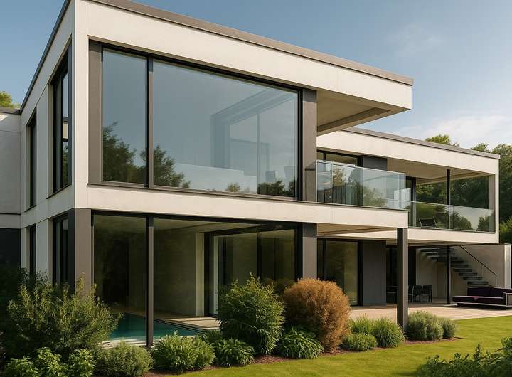 + raumhohe Aluminiumfenster mit Minimalrahmen