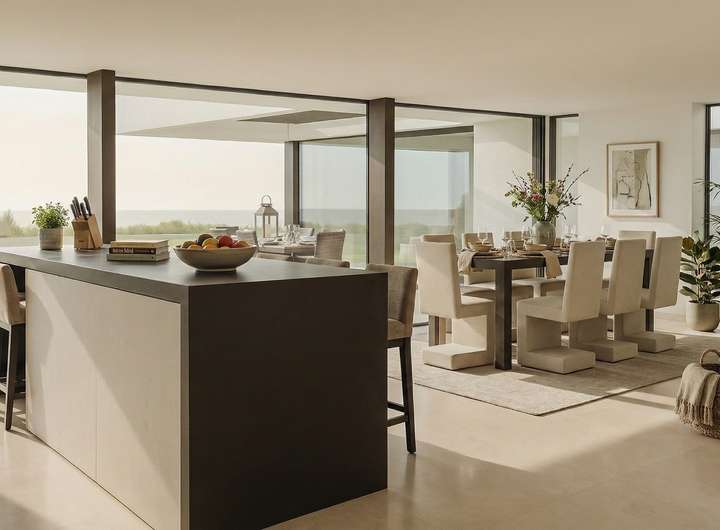 + Einheitliche, großformatige 120×120 cm Feinsteinzeugfliesen (Innen wie Außen)