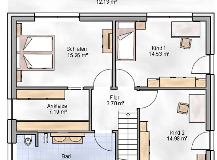 Im Dachgeschoss befinden sich weitere 3 großzügige Schlafräume, ein Abstellraum, sowie ein großzügiges Bad mit wandhängendem WC .Waschbecken und einer Badewanne.